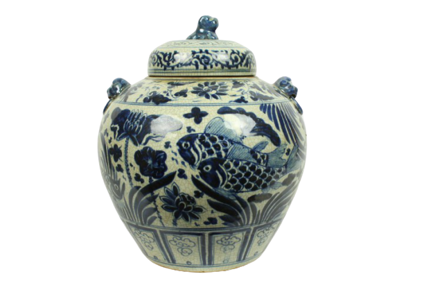 The Ming Garden Collection - Grote Porseleinen Pot Met Vissen