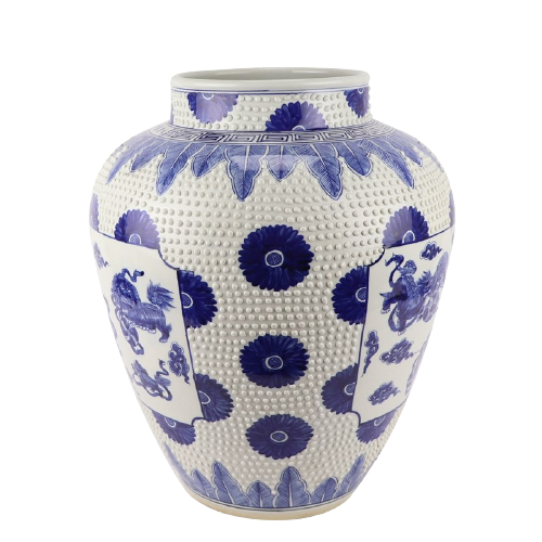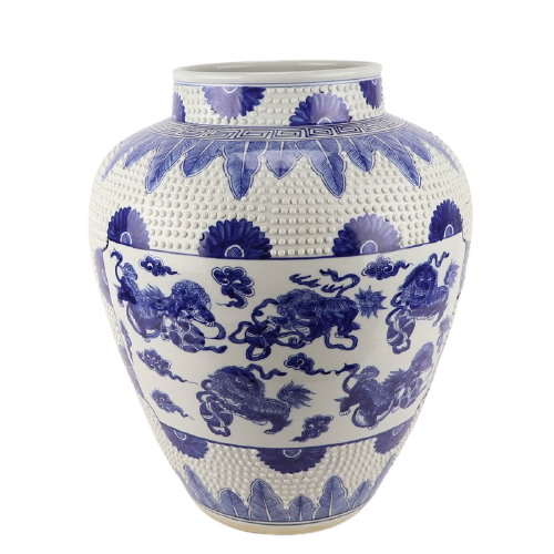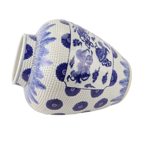Deze prachtige authentiek Chinese Grote Porseleinen Vaas Met Reliëf En Foo-dogs van The Ming Garden Collection is de ultieme decoratieve aanwinst voor uw huis. Zet voortaan uw mooiste (zijden) bloemen in deze prachtige porseleinen vaas!